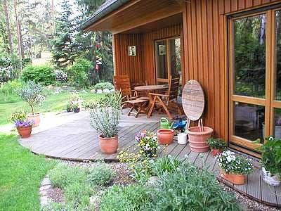 im Garten z.B. Terrassenbeläge aus Lärche oder Bangkirai